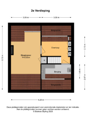 2e verdieping; overloop, slaapkamer met een dakkapel aan de achterzijde, zolderberging en de c.v.-opstelling.